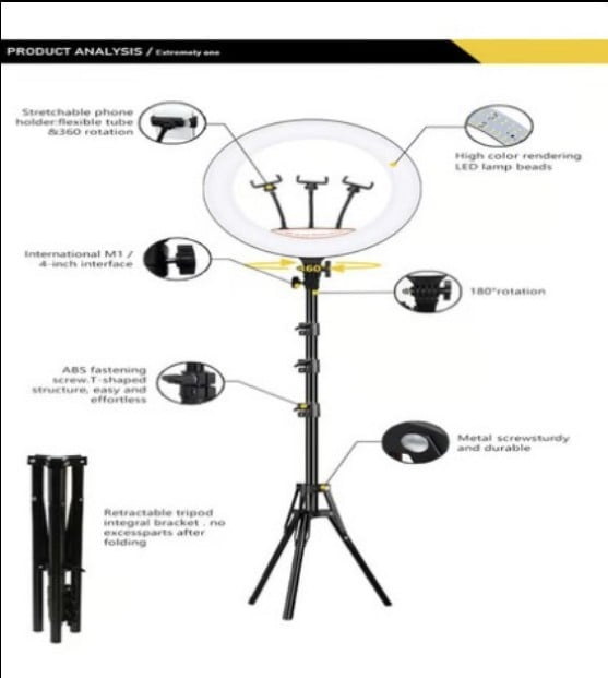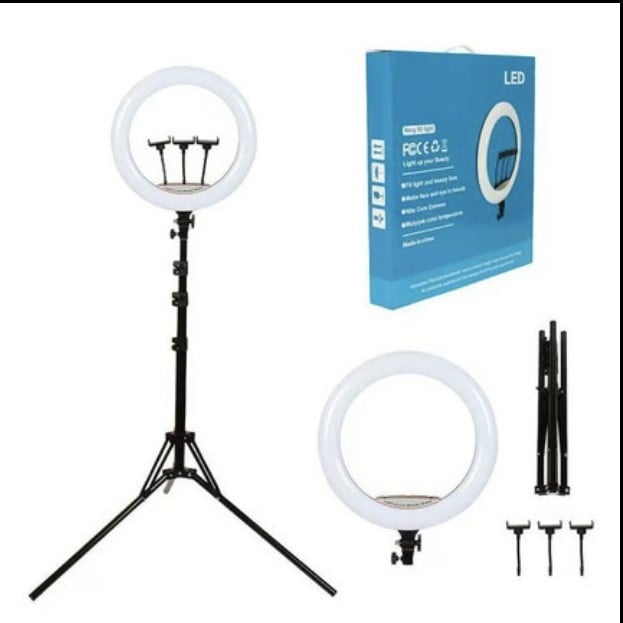 رنق لايت اضاءة LEDتصوير حجم كبير مقاس 28 سم مع ثلاث حوامل للجوال